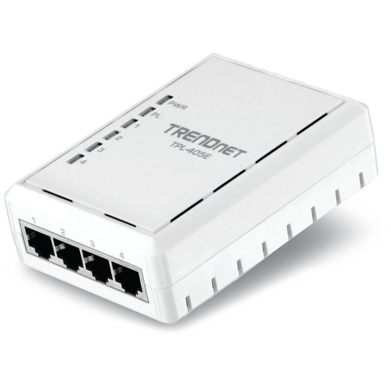 L’adaptateur CPL Trendnet TPL-405E avec quatre prises réseau est capable d’atteindre la vitesse de 500 Mo/s sur la prise de courant électrique et le Gigabit Ethernet sur les ports du switch réseau ! Le débit est bien entendu théorique car les résultats des essais relevés en sont bien loin. Si votre réseau électrique est stable, sans perturbation majeure vous obtiendrez un débit de 23.3 Mo/s à 25 mètres, 18.7 Mo/s à 100 mètres et 13 Mo/s à 150 mètres.